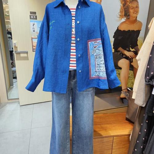 [베네통]린넨오버핏프린팅블라우스BABLB1511_BP