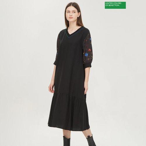 [베네통]슬리브 배색 롱 원피스 BAOPA4541