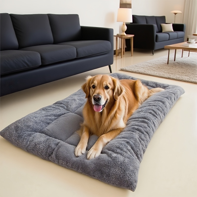 TEMU XXL 플러시 강아지 침대 & 고양이 패드 - 두꺼운 초소프트 폴리에스터 소파형 펫 침대 크레이트 매트, 소형, 중형, 대형 강아지와 고양이에 적합한 아늑한 대형 직사각형 침대