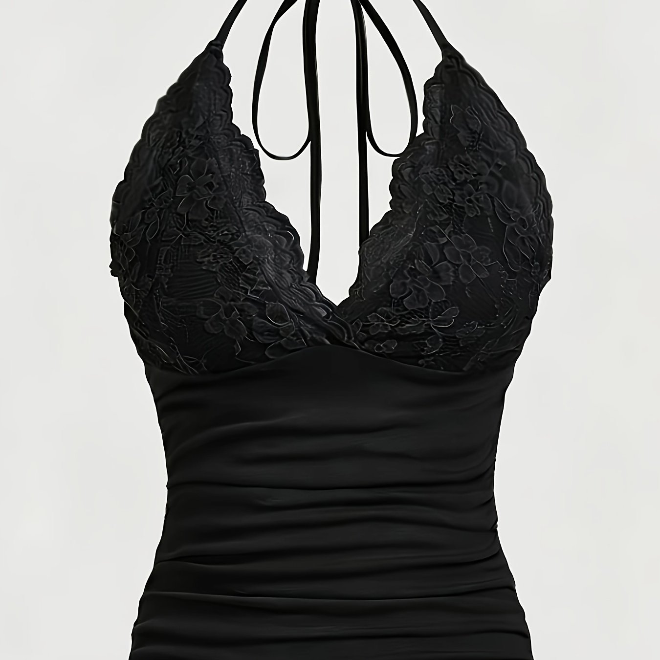 TEMU 우아한 Y2K 스타일 V넥 홀터 탑, 레이스 트림 - 모든 계절에 적합