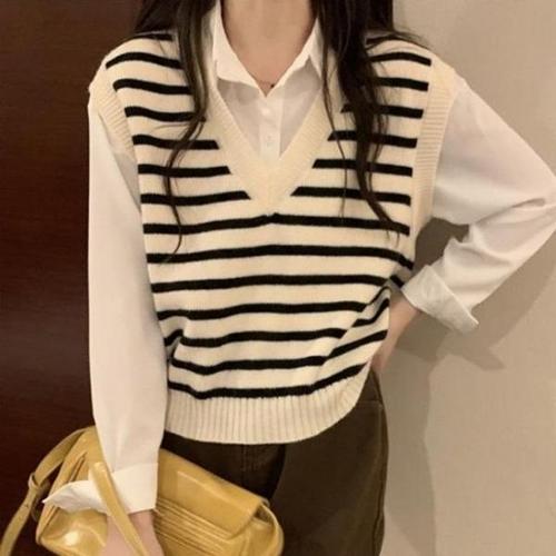 여자베스트 브이니트 니트 여자상의 니트조끼 베 (WFKJXCA)