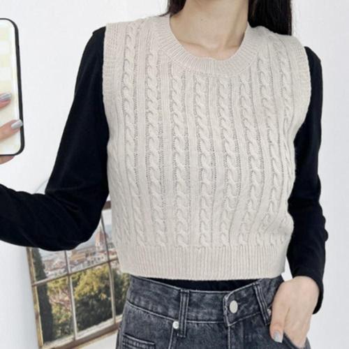 여성 여자 케이블 꽈배기 크롭 니트 조끼 레이어드 베 (WFHTEZ6)