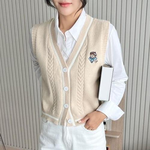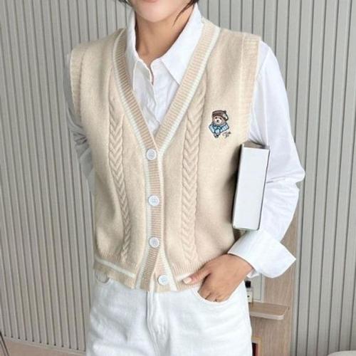 [엄지척]여성 귀여운 곰돌이 브이 라인 오픈 조끼 베스트_20363221_667501