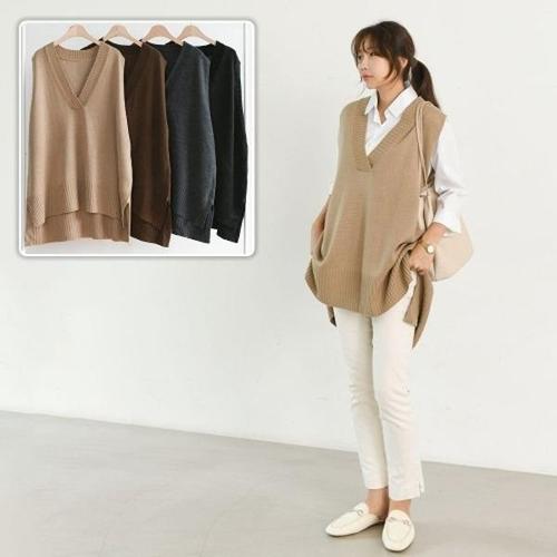 소고 트리아나 세이브존07 소고 트리아나 여성 배색 라인 오버핏 니트 베스트 AJ1GA07
