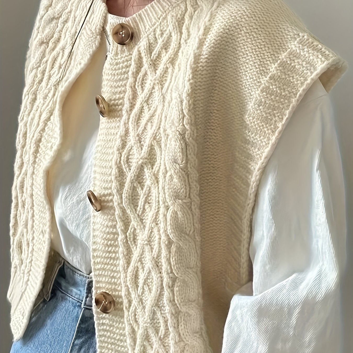 TEMU 여성용 기하학적 디자인 스웨터 조끼, 간편하고 스타일리시하며 버튼이 있는 원단 특징