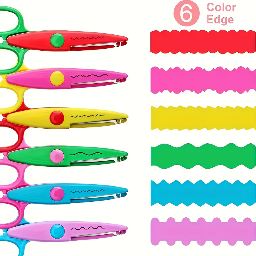 TEMU 안전 끈끈이 트리밍 디자인의 앨범 가위 6개 세트, 학생 및 재미있는 프로젝트에 적합