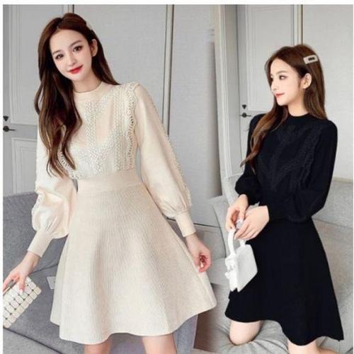 [에이치플러스몰]레이스 베이지 블랙 니트원피스 자수