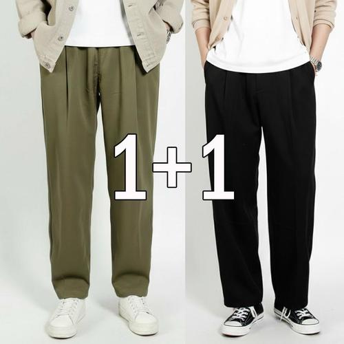 [프랭키뉴욕]1+1 남자 와이드 슬랙스 밴딩 핀턱 빅사이즈 데일리 카키 베이지 블랙_ID275ASET