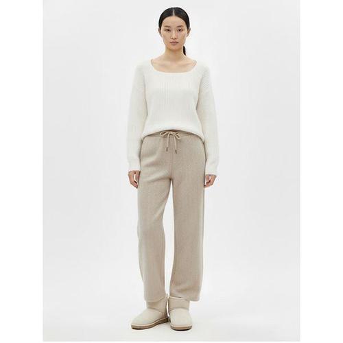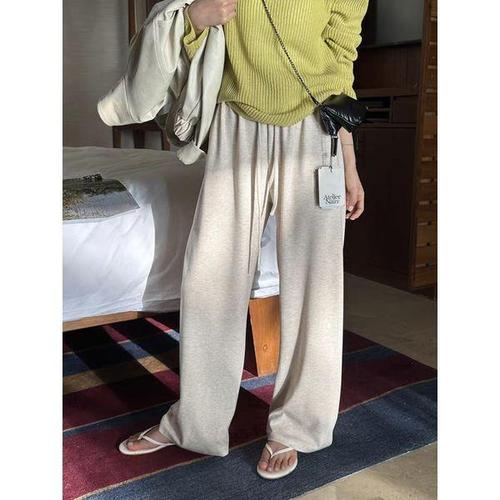 데일리앤 커븐 배색 밴딩 일자 와이드 니트 팬츠 여성 가을 겨울 통바지 데일리 홈웨어
