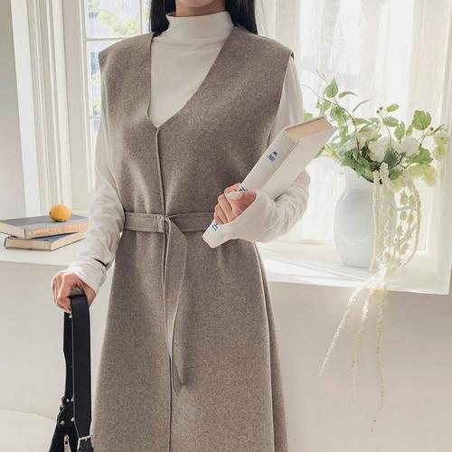 [다잇템]여자 스트랩 베이직 슬리브리스 울혼방 원피스