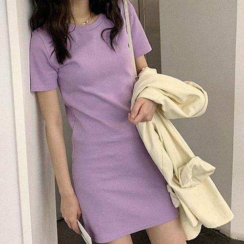 [에이치플러스몰]여성 베이직 반팔 미니 드레스 원피스 꾸안꾸룩