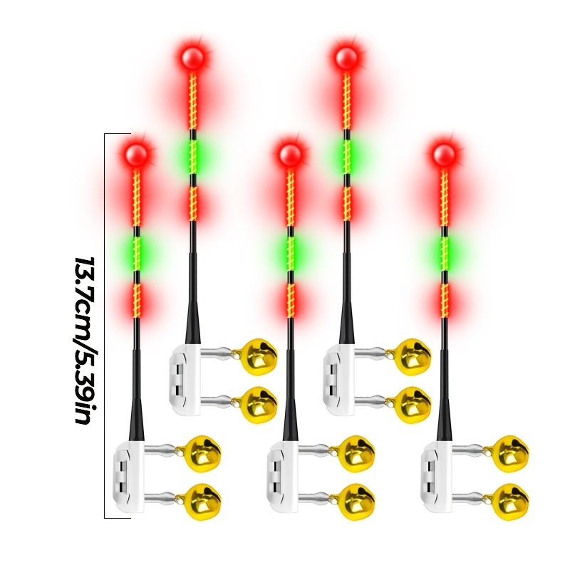 TEMU 5개 낚시대 팁 라이트와 벨, 고시력 야간 낚시 글로우 스틱, ABS 소재, 색상 변경 베이트 , 배터리 구동 (배터리 미포함), 배터리 없음, 낚시/베이트 알람, 낚시 장비, 잉어 낚시, 낚시 알람, 낚시 비트 알람, 베이스 , 낚시 모든 물품, 낚시 센서 알람, 경고
