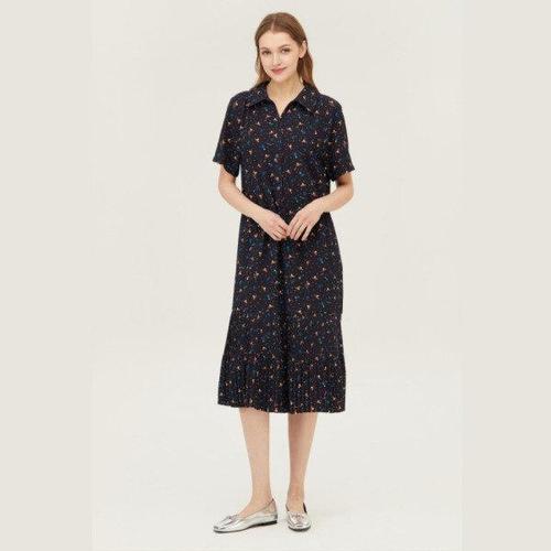 [샵앤] 베일리 국산 여성 하프넥 단추 오픈 5부 소매 롱 원피스 MSM-WDR-2318-네이비