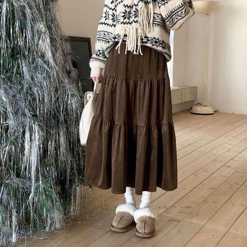 가을의 우아함 코듀로이부터 벨벳까지 롱 스커트 컬렉션(플레어/H라인)