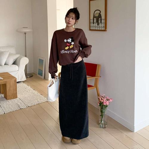 [하프클럽/]여성용 겨울 벨벳 허리밴드 루즈핏 롱 스커트