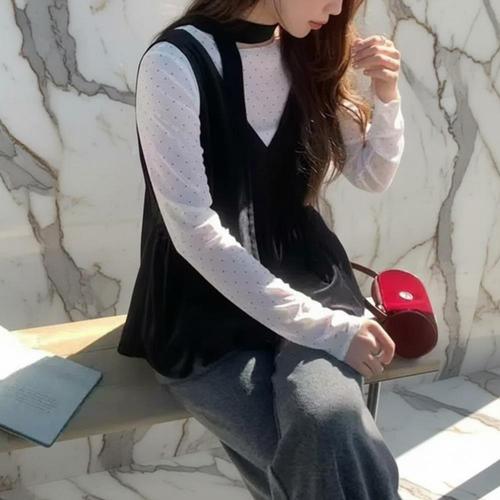 [25 신상] 반목 긴팔 니트 풀오버 + 뷔스티에 벨벳 원피스 SET (VLOAZ1545)