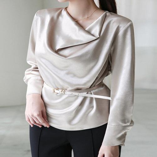 [스타일온미][스타일온미] 리브스 우아한 드레이프 실루엣 벨트SET 글로시 새틴 미드 블라우스