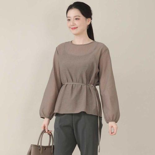 [애비뉴투지]엄마옷 시스루 구김지 볼륨 소매 여성 봄 간절기 초가을 긴팔 벨트 블라우스 B10507