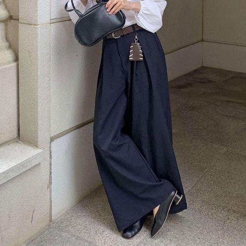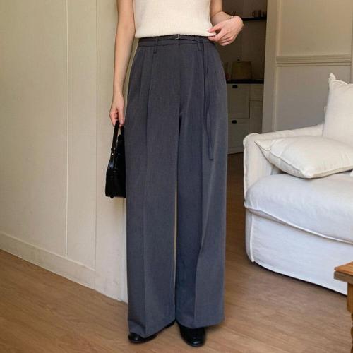 [신상오픈런]여성용 핀턱 벨트 세트 와이드 롱 슬랙스 오피스 스타일