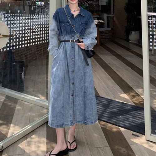 (스타일하우스) 원피스 OPS 빈티지 단추잠금 그라데이션 데님 워싱 벨트 원피스