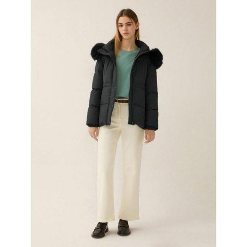 양말제공 여성 벨티드 폭스퍼 후드 덕다운 점퍼 121D4JA453