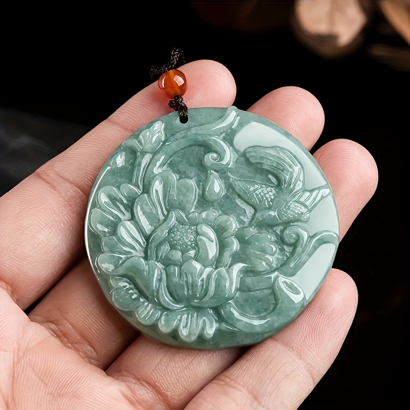 TEMU 남녀공용 모란과 까치 펜던트가 있는 천연석 목걸이