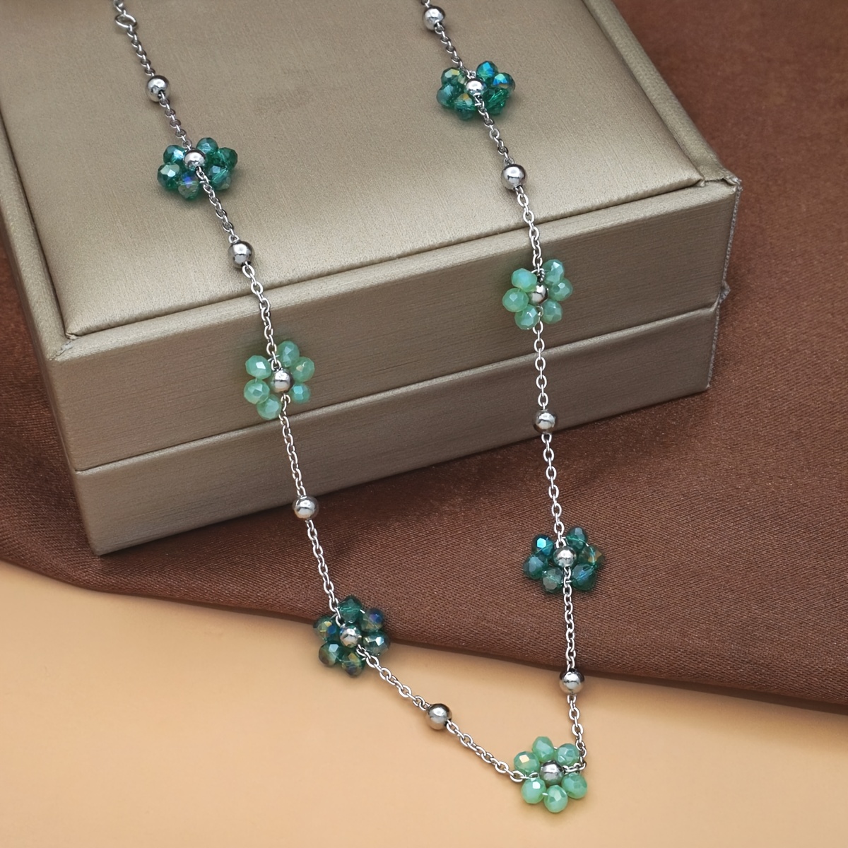TEMU 플로럴 목걸이, 그린 혼합 꽃잎 펜던트 - 생일, 어버이날, 선물 여성용, 웨딩 파티, 데이트, 개학, 등 다양한 행사