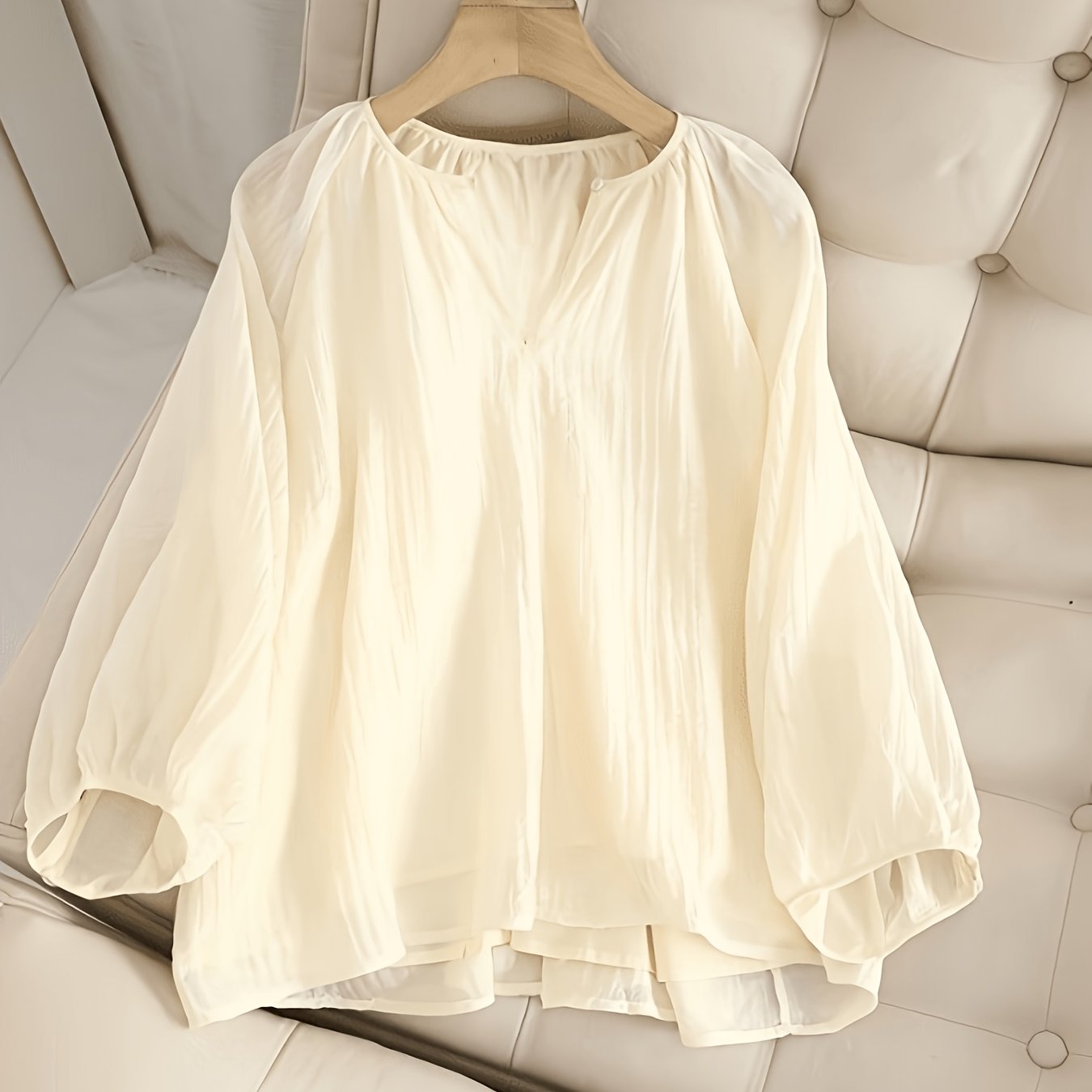 TEMU 여성용 긴팔 경량 통기성 셔츠, 봄 여름 가을 출퇴근 루즈핏 랜턴 슬리브 셔링 캐주얼 탑