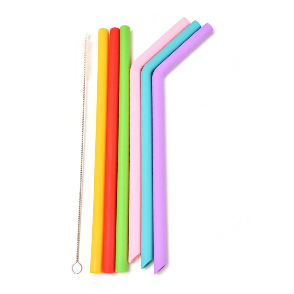 홈애니 실리콘빨대 30.5cm 6p set+세척솔 컬러빨대 일자형 커브형 빨대세트