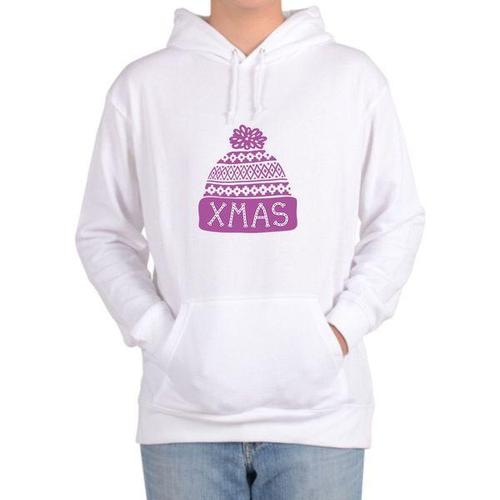 [에이치플러스몰]후드티 성탄절모자 털모자 보라색 프린트티셔츠