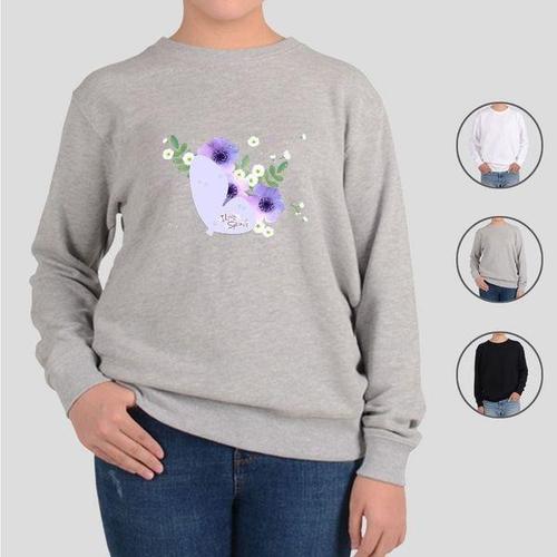 [에이치플러스몰]맨투맨 프린팅티셔츠 보라색꽃 나비