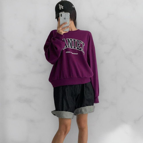 [옷자락] 여자 가을 개강룩 오버핏 보라색티 레터링 맨투맨