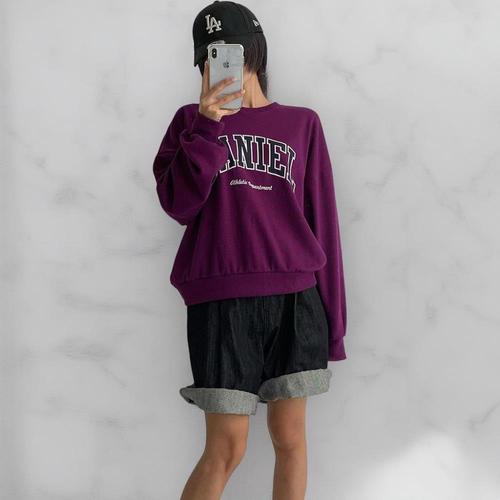 옷자락 / 여자 가을 개강룩 오버핏 보라색티 레터링 맨투맨