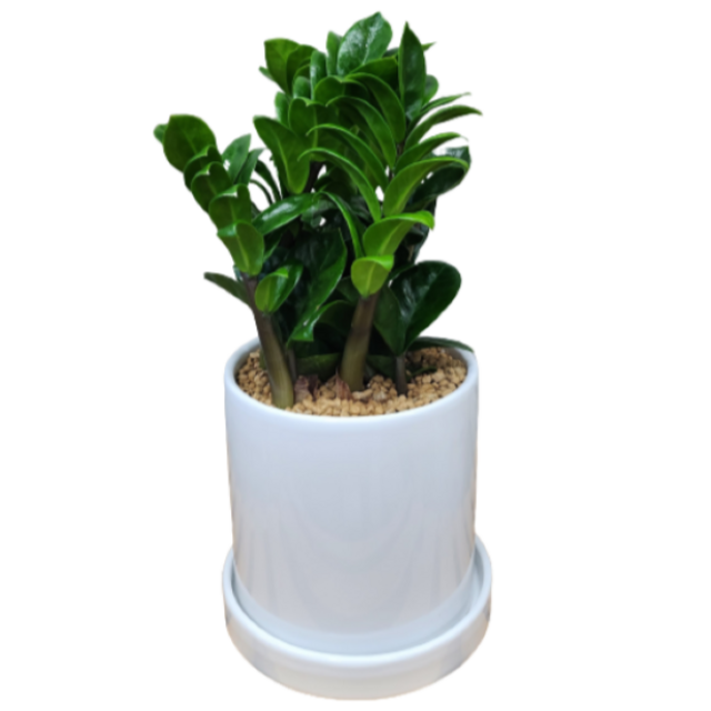 보석금전수 흰색원형 경량화분 인테리어식물 거실화분 개업화분 승진화분 공기정화식물