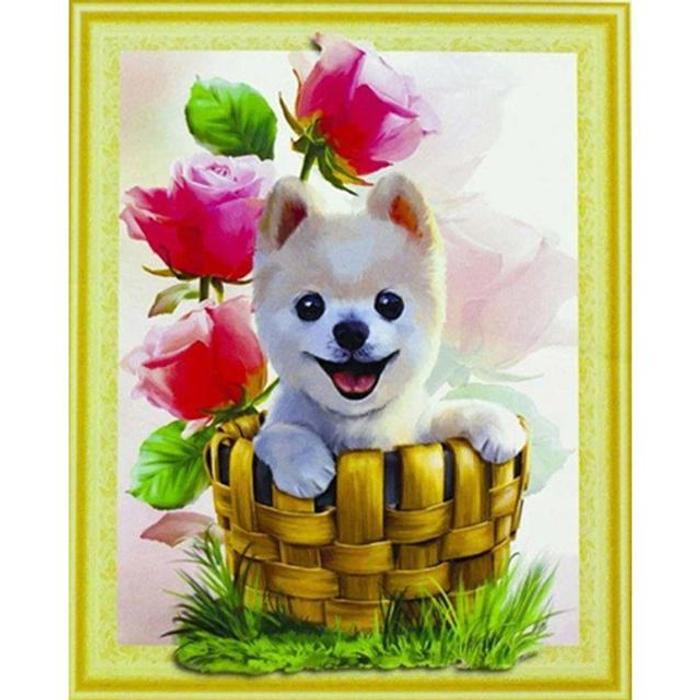친절한탄씨 장미와 아기 강아지 (캔버스) 보석십자수 40x50