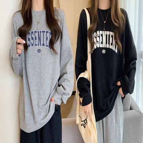 TEMU 봄, 가을, 겨울용 캐주얼 긴팔 라운드넥 스웨트셔츠, 프린트 디자인의 루즈핏 스타일.
