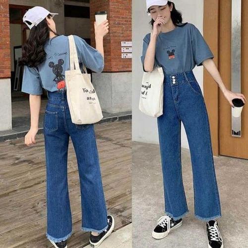 여성 나팔 청바지 보세 워시 블루 마이크로 플레어 초봄 웨이스트 스트레이트 레그 팬츠