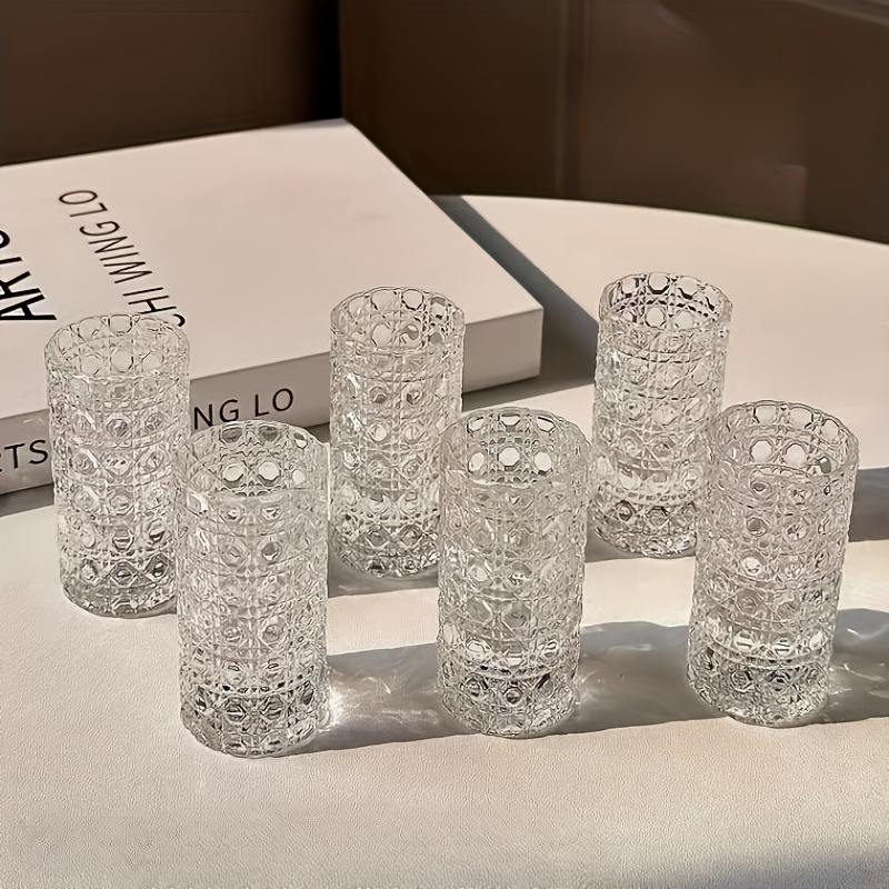 TEMU 6/8 조각 패턴 유리컵, 고품질 투명 컵, 재사용 가능한 다기능 유리컵, 우아한 디자인, 음료용, 정장 테이블웨어, 결혼식, 명절 행사에 적합, 최고의 선택