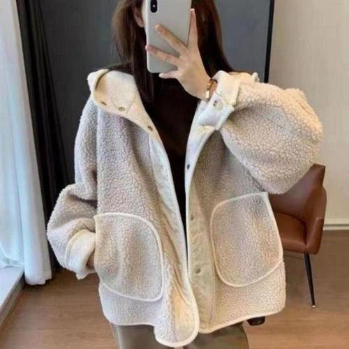 |CCJ6D30|여성용 따뜻한 후드 오버사이즈 보아퍼 겨울 후리스 점퍼
