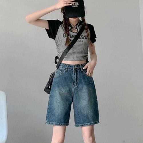 [에이치플러스몰]여름 청 반바지 여자 여성 통 배기핏 키작녀 7부