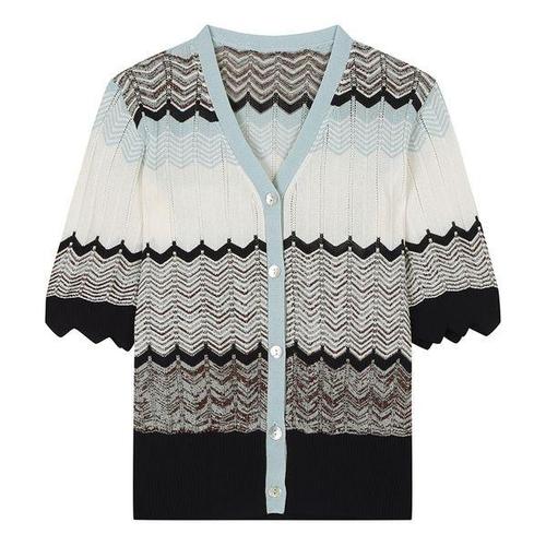 여성 카라넥 보헤미안 뜨개 레이어드 반팔 니트 가디건 MSE-WCD-20389-소라