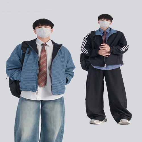제로투올샵2 / 아메리칸 복고 양면 체크 자켓 남녀공용 사진 색상 m