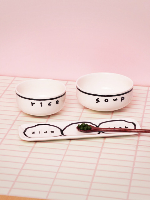 [왈왈스튜디오] 드로잉 1인 식기세트 + 리본선물포장