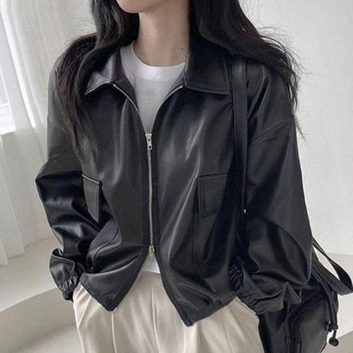 [셀러허브_여성트랜드패션]ONM 봄 캐쥬얼 여자자켓 루즈핏 가죽점퍼 라이딩자켓