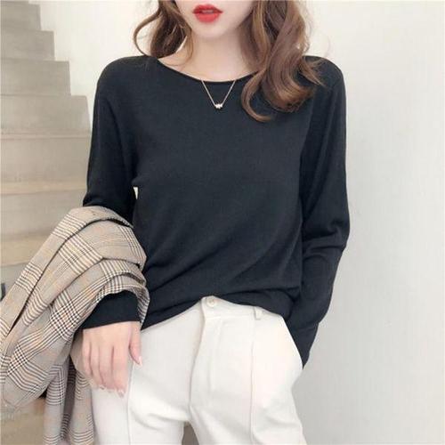 [에이치플러스몰]봄 가을 오피스룩 롱 여성니트 티 티셔츠 라운드