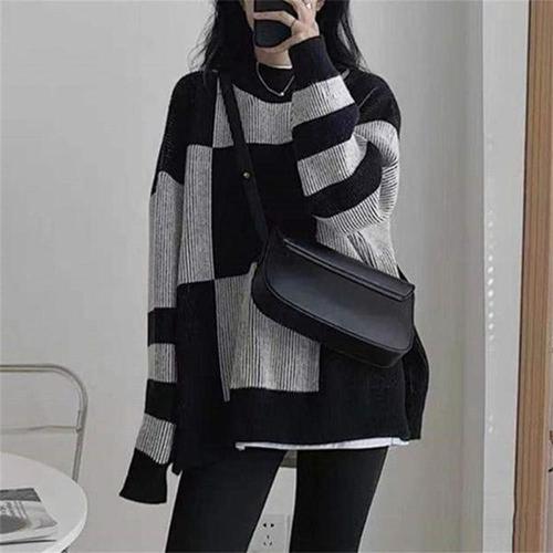 [에이치플러스몰]여성니트 터틀넥 루즈핏 오버핏 겨울 봄 니트 티 롱