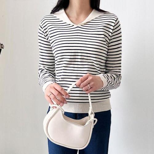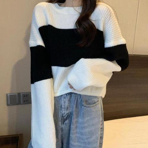 [에이치플러스몰]니트 롱니트 라운드 여자니트티 대학생 티 브이넥 봄