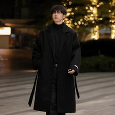 BIKASU 남성 봄가을 빅사이즈 캐시미어코트 미디 겨울 케쥬얼 도톰한 허리띠 코트
