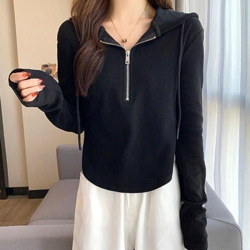 봄 가을 여성 간편 외출용 반집업 후드 긴팔 티셔츠 WE25587