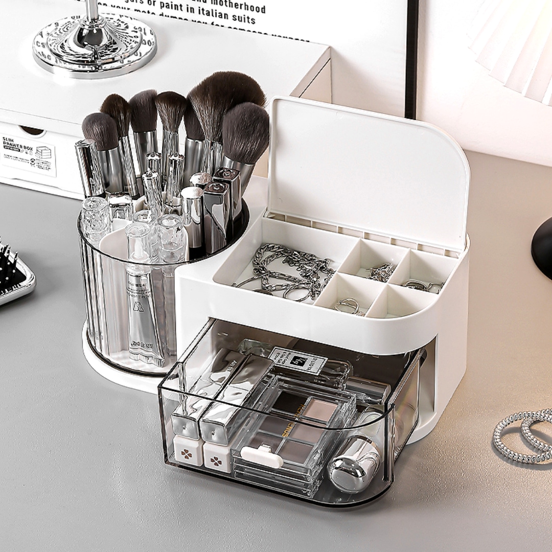 TEMU 360도 회전하는 럭셔리 메이크업 정리함 - 브러쉬, 립스틱 및 아이브로우 펜슬용 방진 화장품 보관함 - 욕실 화장대에 완벽함|화장대|눈썹펜슬